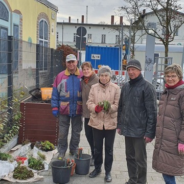Obwohl das trübe Wetter momentan wenig Platz für Gedanken ans Blühen und Beeren-Naschen lässt, handelten sechs Bernauer NABU-Freundinnen und Freunde vorausschauend mit Blick auf die nächste Frühlings- und Sommersaison. Die Gartenfreunde widmeten sich auf dem Bahnhofsvorplatz sechs von der Stadt Bernau zur Verfügung gestellten mobilen Hochbeeten.