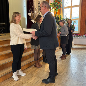 Strahlende Gesichter und feierliche Stimmung beherrschten am Dienstag, dem 27. Januar, das Audimax des OSZ I Barnim in Bernau-Waldfrieden. Der Grund: An 102 Lehramtskandidatinnen und Lehramtskandidaten, Seiteneinsteigerinnen und Seiteneinsteiger sowie Lehrkräfte des berufsbegleitenden Vorbereitungsdienstes des Abschlussjahrgangs Januar 2026 wurden die Zeugnisse der 2. Staatsprüfung verliehen.