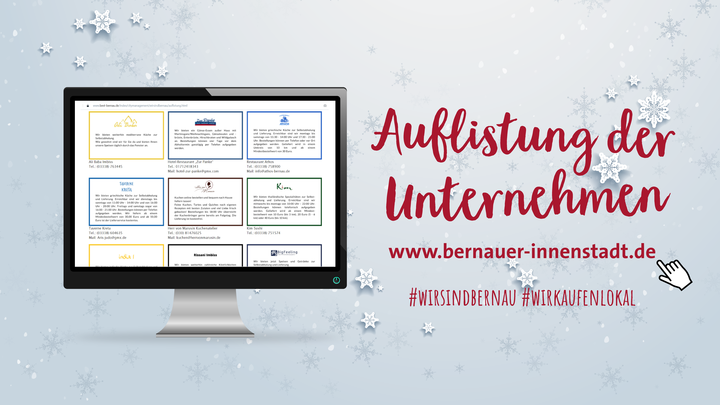 Viele der Gewerbetreibenden versuchen durch neue Angebote, wie beispielsweise Abhol- und Lieferdienste den wirtschaftlichen Schaden durch den Lockdown zu verringern. Denn gerade die Tage vor den Feiertagen sind für viele Inhaber*innen die umsatzstärkste Zeit des Jahres. „Um die Gewerbetreibenden in dieser Situation zu unterstützen, haben wir bereits im Frühjahr eine Unternehmensauflistung auf www.bernauer-innenstadt.de eingerichtet. Für interessierte Kund*innen sind dort die Öffnungszeiten, Kontaktdaten und Angebote regionaler Unternehmen aufgearbeitet“, so Nils Lönnies, Citymanager der BeSt Bernauer Stadtmarketing GmbH. Die Auflistung wird fortlaufend bearbeitet und ergänzt. Eine Haftung, Gewährleistung oder Garantie für die Aktualität, die Richtigkeit und die Vollständigkeit der Inhalte kann nicht übernommen werden.