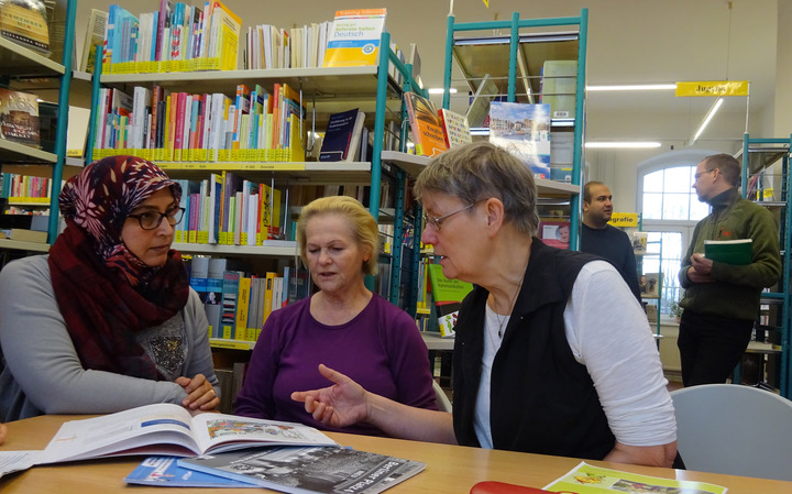 Das ehrenamtliche Sprachtraining-Angebot in der Bernauer Stadtbibliothek wird gern genutzt. Foto: Pressestelle/cf
