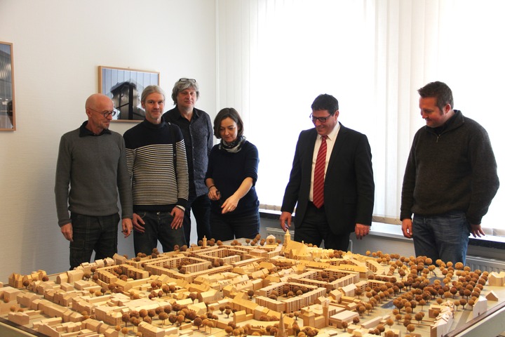 Bürgermeister André Stahl, Stadtplanungsamtsleiterin Sylvia Hirschfeld und Walter Bitzer vom Sanierungsträger ews machten sich am Dienstag ein Bild von dem ergänzten Innenstadtmodell. Übereinstimmend kamen sie zu dem Schluss, dass diese Ergänzung sehr elegant und gelungen sei. Außerdem könne man sich ein genaueres Bild über diverse Planungsprozesse machen und testen, wie etwa ein Neubau im Zusammenspiel mit seiner Umgebung wirke.