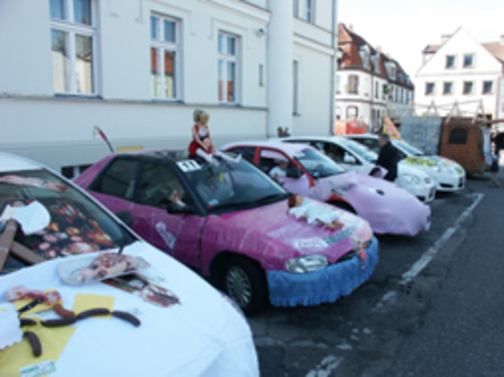 Bildtext: Mit viel Phantasie schmücken die Teilnehmer der traditionellen Rallye in Skwierzyna sich und ihre Autos