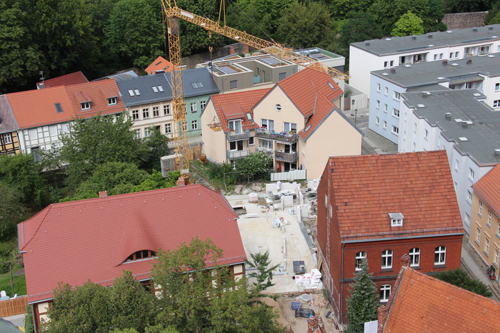 In neuer alter Schönheit präsentiert sich bereits seit vergangenem Sommer das ansehnliche Fachwerkgebäude Kirchplatz 8. Dem vorausgegangen waren zweijährige umfassende Sanierungsarbeiten. Pfarrerin Konstanze Werstat und Pfarrer Daniel Rudolphi haben dort ihre Büros, ebenso die Verwaltung der Kirchengemeinde. Vorm Haus blühen Sommerblumen. Die Wege und auch der Parkplatz sind neu gepflastert. Im Zuge der Sanierung des ebenfalls als Denkmal geschützten historischen Heizkellers wurde eine moderne umweltfreundliche Heizungsanlage eingebaut, die das Kirchenschiff, das ehemalige Lateinschulhaus, beide Pfarrhäuser und auch den Neubau mit Wärme versorgen wird.