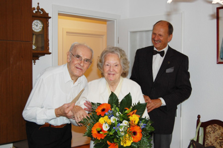 Heinz und Grete Schuster freuen sich über den Besuch von Bürgermeister Hubert Handke.