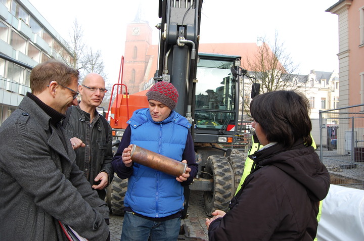 Eine Hülse mit Zeitdokumenten wurde am Montagmorgen in der Bürgermeisterstraße gefunden. Konkret: In der Stadtsäule, die aufgrund der Bauarbeiten demontiert werden musste.