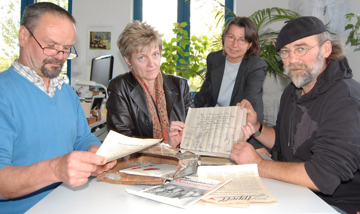Außerdem waren in der Kupferkassette unter anderem eine Ausgabe der Zeitung „Die Tat“ vom 13. August 1949 und eine Broschüre „Aus der Geschichte der Arbeiterbewegung unseres Kreises“. Letztere wurde zusammen mit anderen Zeitdokumenten bei der Rekonstruktion des Denkmals im Jahre 1980 in die Kassette gelegt.Demontiert wurde das Denkmal, um es während des Ausbaus des Bahnhofsplatzes einer gründlichen Sanierungskur zu unterziehen. Diese erfolgt in der Werkstatt von Steinmetz Karsten Scholz in Belzig. Im kommenden Jahr wird das Denkmal dann auf dem neu gestalteten Platz wieder aufgestellt. Und zwar an der Stelle, wo sich derzeit die Uhr des ehemaligen Schichtpressstoffwerkes befindet. Dann sollen die jetzt gefundenen Zeitdokumente, ergänzt durch aktuelle in einer neuen Kassette wieder in den Sockel des Denkmals eingemauert werden. „Damit wollen wir späteren Generationen Zeitgeschichte erlebbar machen“, so Bürgermeister Hubert Handke.
