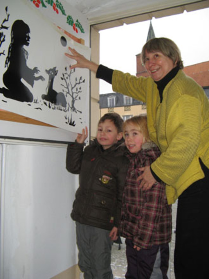 Hinter jedem Kalenderfenster ist eine Szene aus einem bekannten Märchen versteckt. Das jeweilige Märchen kann anschließend im Heimatmuseum Henkerhaus auf Rollfilm angeschaut werden.