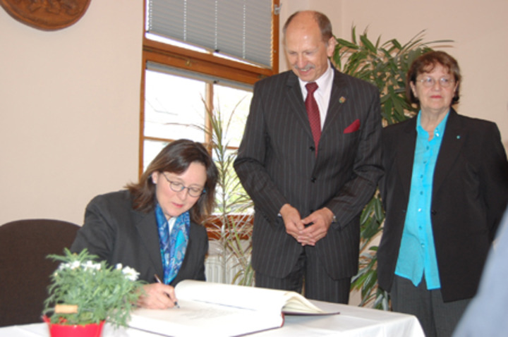 Inzwischen habe sich viel getan, so Handke. Er nutzte die Gelegenheit, der Botschafterin Bernau vorzustellen und bat sie anschließend, sich ins Goldene Buch der Stadt einzutragen.
