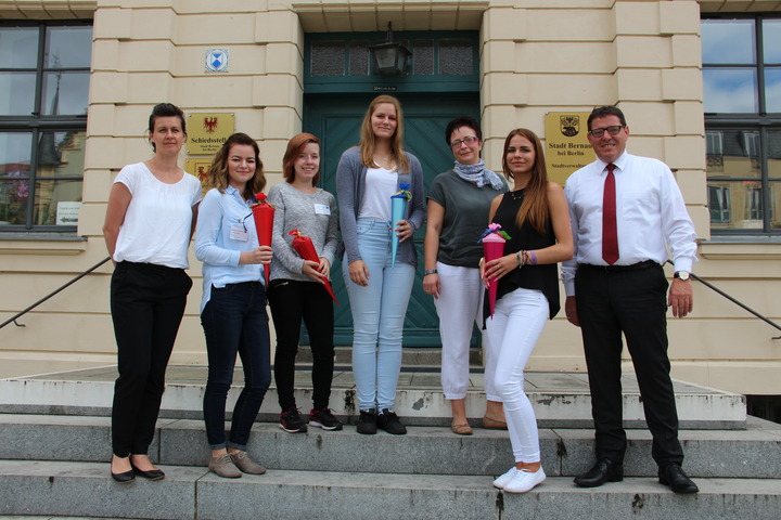 Sieben neue Lehrlinge beginnen in diesem Jahr ihre Ausbildung bei der Stadt Bernau. Bürgermeister André Stahl begrüßte sie heute mit einem kleinen Empfang im Rathaus.