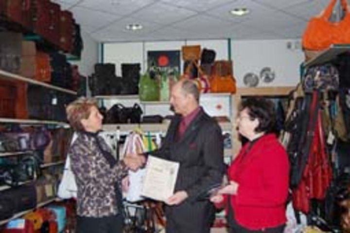 Schon zum dritten Mal wurde „Lederwaren Radtke“ in der Berliner Straße 21 Sieger im Bernauer Schaufensterwettbewerb. Bürgermeister Hubert Handke und die Vorsitzende der Stadtverordnetenversammlung Gudrun Gaethke gratulierten Geschäftsinhaberin Gabriele Gesche dazu herzlich. „Die Wahl durch die Bernauer ist ein Zeichen, dass das Geschäft ein Aushängeschild für die Stadt ist“, so der Bürgermeister. Dies gelte nicht nur für das Schaufenster, sondern auch für die freundlichen Mitarbeiterinnen, die man dahinter sehe. Das hörte Gabriele Gesche natürlich gern. Sie sei Perfektionistin bei der Schaufenstergestaltung. Aber die Mühe lohne sich, wie sie am Zuspruch der Kunden merke.