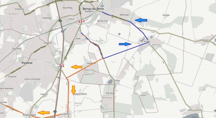 Daraus ergeben sich für die Bewohner des Stadtteils Lindow in der nächsten Woche erhebliche Einschränkungen. Die Umleitungsstrecke Richtung Berlin verläuft über die Blumberger Chaussee, Birkenhöhe, Birkholz und Schwanebeck oder Alternativ über die Autobahn-Anschlusstelle Nord, die über die Bernauer Innenstadt erreicht werden kann. Der Weg zum Bernauer Zentrum verläuft dann über die Blumberger Chaussee, den Börnicker Landweg und Börnicke.