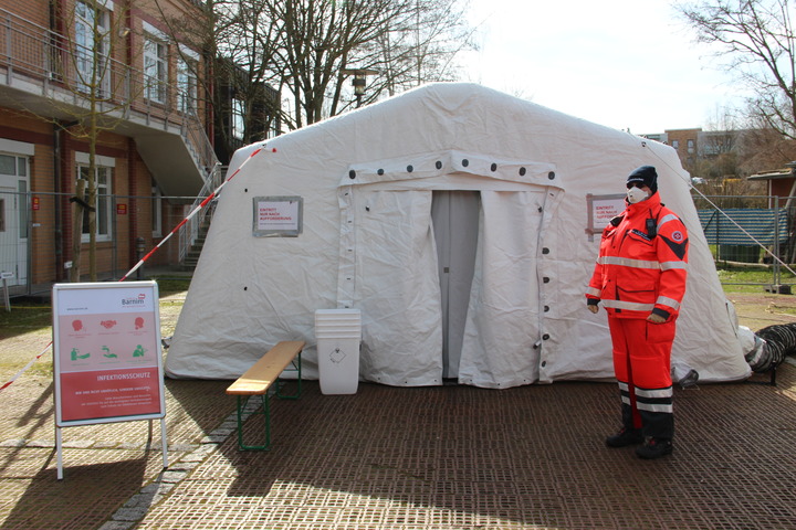 Am Sonntagmorgen ist eine Teststelle für Infektionen mit dem Corona-Virus am Immanuel Klinikum Bernau Herzzentrum Brandenburg in Betrieb gegangen. Im Testzelt werden Bürgerinnen und Bürger nach Rücksprache mit dem Gesundheitsamt des Landkreises Barnim mit Verdacht auf eine Ansteckung mit dem Corona-Virus getestet.