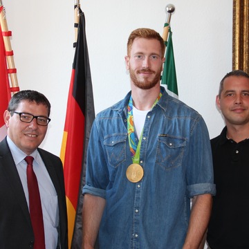 Auf eine kleine Stippvisite zum Hauptsponsor KMG Kessmann Montage Group begab sich Olympiasieger Christoph Harting nach Bernau. Bei der Gelegenheit besuchten der Diskuswerfer und sein langjähriger Förderer Michael Kessmann auch das Rathaus. Bürgermeister André Stahl begrüßte den 26-Jährigen Leistungssportler und beglückwünschte ihn zu seinem beeindruckenden Erfolg. mehr erfahren