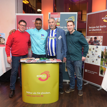 Zum Heimspiel von Hertha BSC gegen Schalke 04 präsentierte sich Herthas Partnerstadt Bernau am 11. März im Atrium des Olympiastadions. Mit von der Partie waren neben Hertha-Botschafter Manfred Kerkhofer und Bürgermeister André Stahl auch Fußball-Fans aus der Stadtverwaltung und von der BeSt Bernauer Stadtmarketing GmbH. mehr erfahren