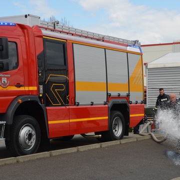 Neues Feuerwehrauto mit Einsatzhörnern und Sirene begrüßt