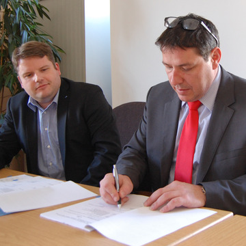 Als eine von zwei Städten bewirbt sich Bernau um die Ausrichtung des Brandenburg-Tages 2018. Die Bewerbungsunterlagen hat Bürgermeister André Stahl heute persönlich an Karl-Ludwig Böttcher, den Geschäftsführer des Städte- und Gemeindebundes Brandenburg, übergeben.