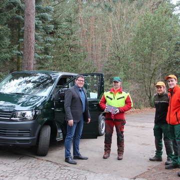 Tannengrün, nagelneu und geräumig stand der neue Transporter am Freitag auf der Fläche vor der Waldarbeitsschule. Ab sofort soll er die städtischen Forstarbeiter an den jeweiligen Einsatzort bringen. Bürgermeister André Stahl ließ es sich nicht nehmen, das schicke Gefährt den künftigen Nutzern persönlich zu überreichen. mehr erfahren
