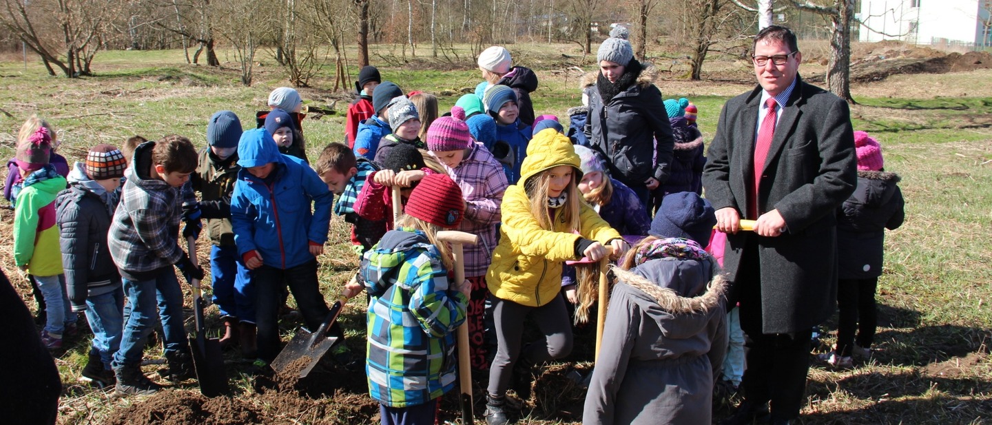 Kurz vor Beginn der Zeremonie wehten Schneeschauer über die Brache, doch pünktlich zum Spatenstich siegte die Sonne: Ein gutes Omen für den Bau des Spiel- und Erlebnispfads in der Kriemhildstraße. Hierbei entsteht ein Naherholungsraum mit naturnaher Wasserfläche und Spielbereichen. Bei planmäßigem Verlauf der Bauarbeiten kann der Spiel- und Erlebnispfad im Juli eröffnet werden. mehr erfahren