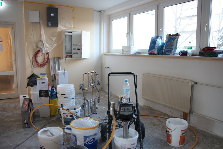 Das neue Jahr begann in der Integrationskita Regenbogen mit Bauarbeiten im Erdgeschoss. Dafür sind zwei Gruppen aus dem Krippenbereich mit „Sack und Pack" ins erste Obergeschoss umgezogen.
