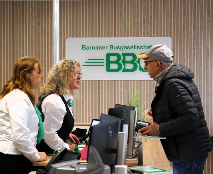Bereits in der vergangenen Woche war das Interesse groß: Zahlreiche Bürgerinnen und Bürger warfen neugierige Blicke durch die Glastür. Nun stehen die drei neu eingestellten Mitarbeiterinnen nach intensiver Schulung für alle Anliegen rund um Fahrpläne, Verbindungen, Abonnements und Tarife zur Verfügung. Die Geschäftsstelle überzeugt durch ein freundliches, nachhaltiges Design mit viel Holz und dem typischen BBG-Grün.