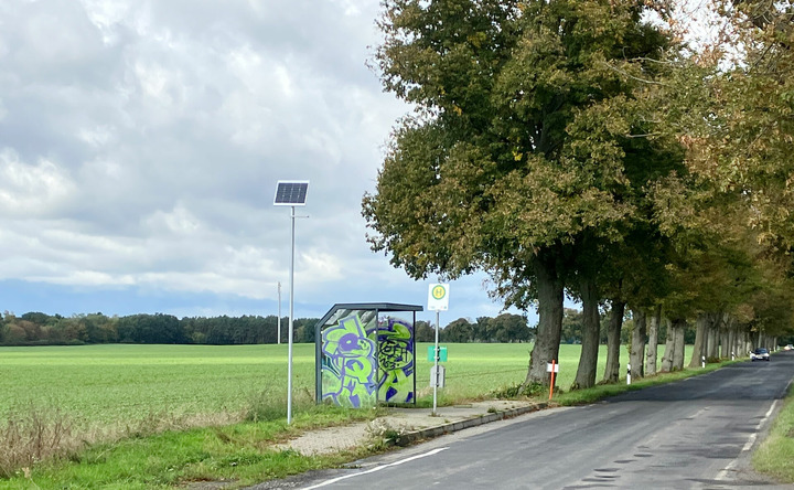 Bushaltestelle Birkholz-Siedlung nun mit Solar-Beleuchtung
