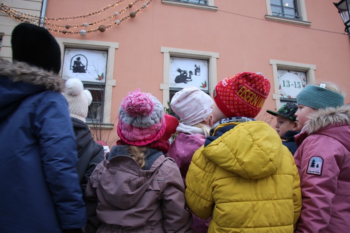 Punkt 9.30 Uhr stehen die kleinen Pankewichtel vor dem Historischen Rathaus. Kalte Nasenspitzen ragen nach oben, neugierige Augen wandern über die festlich geschmückte Fassade. Plötzlich schnellen mehrere kleine Finger nach oben rechts: „Da! Da ist die Zehn!". Die Zahl wird umgedreht und dahinter erscheint ein Bild, das einen ersten Vorgeschmack auf die folgende Märchenstunde gibt.