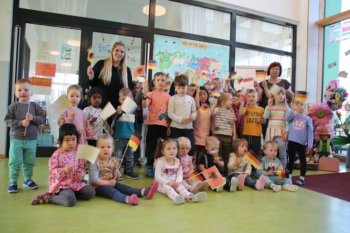 In der Kindergärtnerei werden Mädchen und Jungen aus 15 verschiedenen Nationen betreut: aus Afghanistan, Albanien, China, Griechenland, Kamerun, Korea, von den Philippinen, aus Polen, Russland, Schweden, Sri Lanka, Tansania, aus der Türkei, Ungarn und natürlich aus Deutschland. In jeder Gruppe gibt es mindestens ein Kind nichtdeutscher Herkunft. Und mit deren Heimatländern wird sich die jeweilige Kita-Gruppe näher beschäftigen.