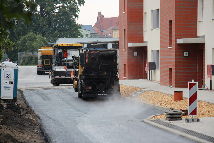 Die Anwohner der Praetoriusstraße im Puschkinviertel können sich über eine runderneuerte Straßendecke freuen. Die Asphaltarbeiten sind inzwischen abgeschlossen. „In den nächsten 1 ½ Wochen werden nun noch die Seitenbereiche der Fahrbahn, die sogenannten Bankette, wiederhergestellt", informiert Jürgen Brinkmann, Leiter des Infrastrukturamts.
