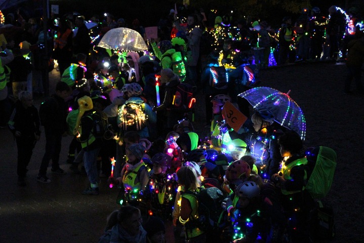 Die Schülerinnen und Schüler hatten ihre Schulranzen, Fahrräder und Roller mit Stirnlampen, Warnwesten, Lichterketten, Knicklichtern und blinkenden Regenschirmen ausgestattet. „Das Lichtermeer, das sich heute Morgen auf die Schule zubewegte, war nicht zu übersehen", sagt Frau Schwikal, Mitarbeiterin des Bernauer Ordnungsamtes. „Doch gerade zur dunklen Jahreszeit sind es häufig diejenigen, die zu Fuß oder mit dem Rad unterwegs sind, die zu spät gesehen werden und besonders gefährdet sind. Um das zu ändern, verteilt die Stadt im Rahmen der Aktion praktische Hilfsmittel wie Reflektoren und Schnapparmbänder."