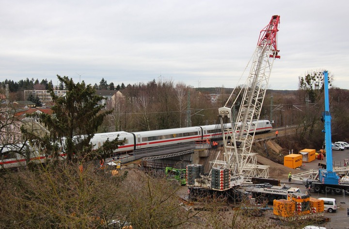 Die Brückenbauarbeiten der Deutschen Bahn an der Börnicker Chaussee gingen am Wochenende mit dem Ausbau der Hilfsbrücken und dem Einbau der neuen Überbauten planmäßig voran.