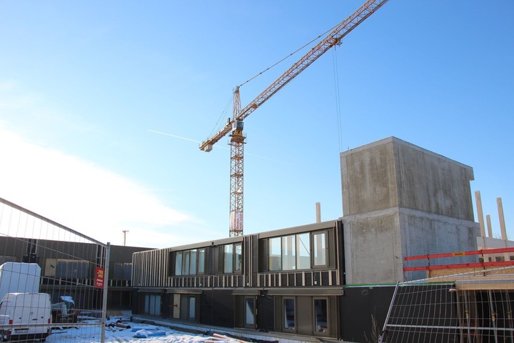 Derzeit steht die Montage der Holzmodule auf dem Programm. Es folgen zügig danach die Dach- und Fassaden-Arbeiten, ehe die Ausbaugewerke zum Zuge kommen.