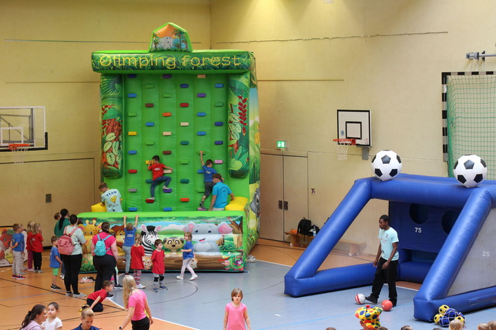 Beim Kitasportfest am Mittwoch, dem 3. Juli, bot der Kreissportbund Barnim (KSB) den Mädchen und Jungen viel Spaß und Bewegung. Bereits das vierte Mal waren Barnike und Co. zu Gast in der Erich-Wünsch-Halle.