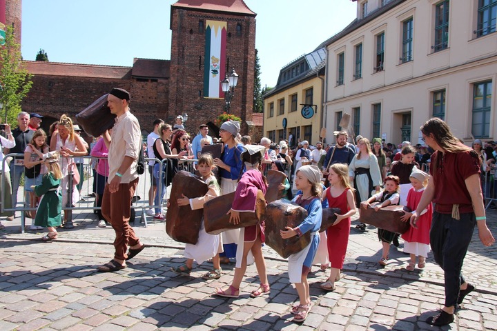 „Als kleines Dankeschön fürs Mitwirken am Umzug winkt allen Akteuren am Samstag, dem 14. Juni, freier Eintritt auf das mittelalterliche Festgelände", verrät Nele Spoenemann, die im Kulturamt der Stadt die organisatorischen Fäden für das Fest in der Hand hält.