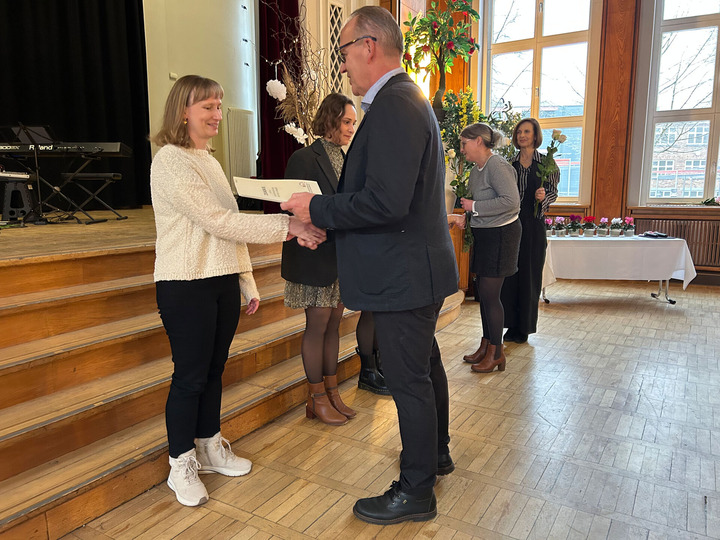 "Durch die gute Zusammenarbeit mit allen am Prozess beteiligten ist es uns gelungen, auch im Jahr der Umstrukturierung und Neugründung des Landesinstituts Brandenburg für Schule und Lehrkräftebildung (LIBRA) die Ausbildung so substanziell zu gestalten, dass wir mit Ihnen kompetente, engagierte und innovative Lehrkräfte in die Schulen verabschieden können", sagte Dr. Holger Dathe, kommissarischer Leiter des Pädagogischen Zentrums Bernau, in seiner Eröffnungsrede. Scherzhaft fügte er an die Absolventinnen und Absolventen gerichtet hinzu: „Das Referendariat war ‚Wellness' – keine Unterrichtsvorbereitungen für 26-28 Wochenstunden, keine Elterngespräche, keine Fachkonferenzen und noch einiges mehr. Ich hoffe, Sie denken im Schullalltag gern an uns zurück."