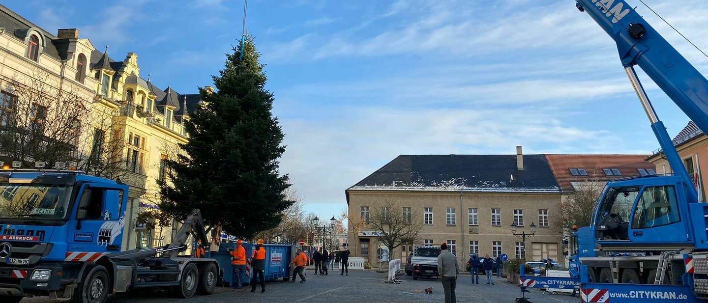 Zum Beginn der Adventszeit wurde heute der diesjährige Weihnachtsbaum der Stadt von Mitarbeitern des Bauhofs auf dem Marktplatz aufgestellt. Großzügiger Spender der 25 Jahre alten und 12 Meter hohen Nordmanntanne ist die Familie Stopp aus Schönow. mehr erfahren
