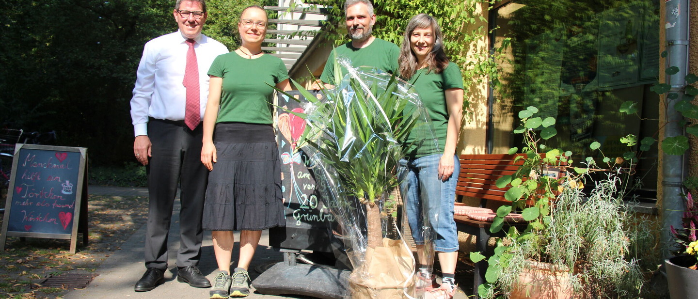 Der Bioladen „Grünbär - Naturkost“ feierte am Dienstag, dem 9. September, sein 20-jähriges Bestehen. Bürgermeister André Stahl ließ es sich nicht nehmen, der Inhaberin Saskia Nöring und ihren Mitarbeitern zum Jubiläum zu gratulieren.