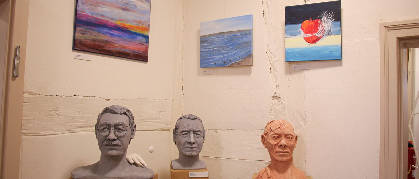 „ICH+DU=WIR" hieß die vierte Gemeinschaftsausstellung der bildenden und angewandten Kunstkurse, die die FRAKIMA-Werkstatt vom 26. Mai bis 14. Juni 2025 im Kantorhaus präsentierte. 825 Bernauer und Gäste kamen, um sich die Malereien, Zeichnungen, Aquarelle, Plastiken, Studien, Illustrationen und auch Filzarbeiten anzuschauen. „Das ist ein Besucherrekord! So viele Interessierte an unseren Werken hatten wir bisher noch nie“, freut sich Anja Schreier, Leiterin der FRAKIMA-Werkstatt.