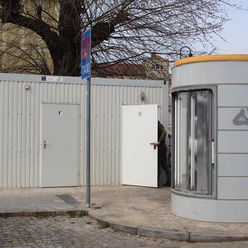 Provisorische Toilette am Bahnhof