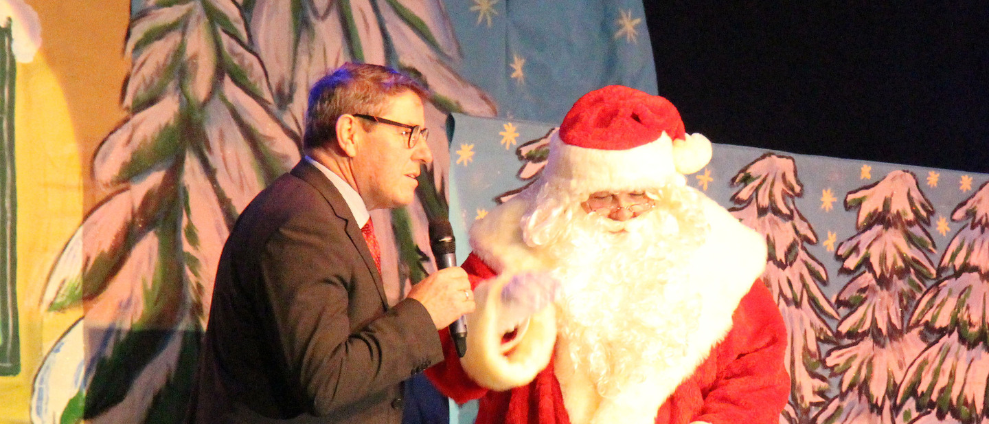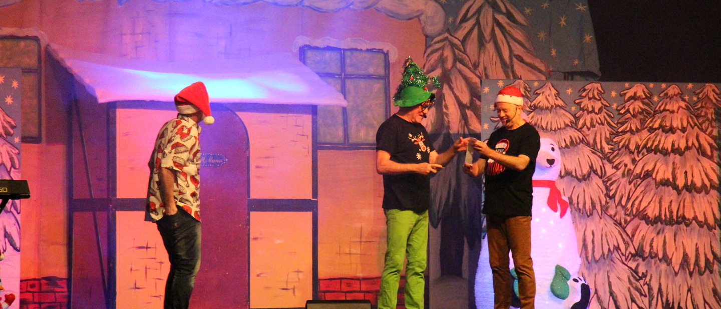 Ganz weihnachtlich ging es am Donnerstag, dem 19. Dezember, in der Sparkassen-Arena Bernau zu. Insgesamt 2900 Bernauer Kinder im Kita- und Grundschulalter waren zum weihnachtlichen Musiktheater von Nobel-Popel und Tanzzwiet eingeladen.