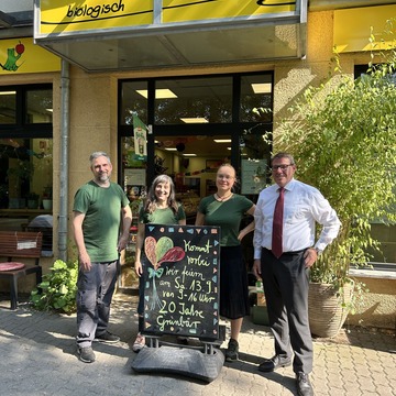 Der Bioladen „Grünbär - Naturkost“ feierte am Dienstag, dem 9. September, sein 20-jähriges Bestehen. Bürgermeister André Stahl ließ es sich nicht nehmen, der Inhaberin Saskia Nöring und ihren Mitarbeitern zum Jubiläum zu gratulieren.
