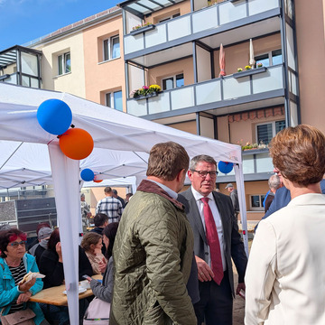 Zu einem Mieterfest hatte die Wohnungsgenossenschaft „Einheit“ eG Bernau am 12. September in die Praetoriusstraße geladen. Anlass war die Fertigstellung eines Neubaus mit 35 Wohnungen sowie das Sanierungsende im umliegenden Quartier.