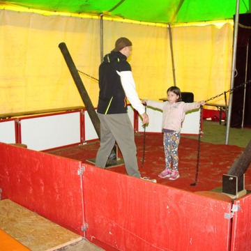 Seit Montag ziert ein Zirkuszelt den Garten der Kita „Kleiner Bär" am Neptunring 4 in Bernau-Süd. Der Grund: 34 Steppkes im Alter von 3-6 Jahren lassen sich von den Artisten Helena und James Schindler zu kleinen Zirkuskünstlern ausbilden.