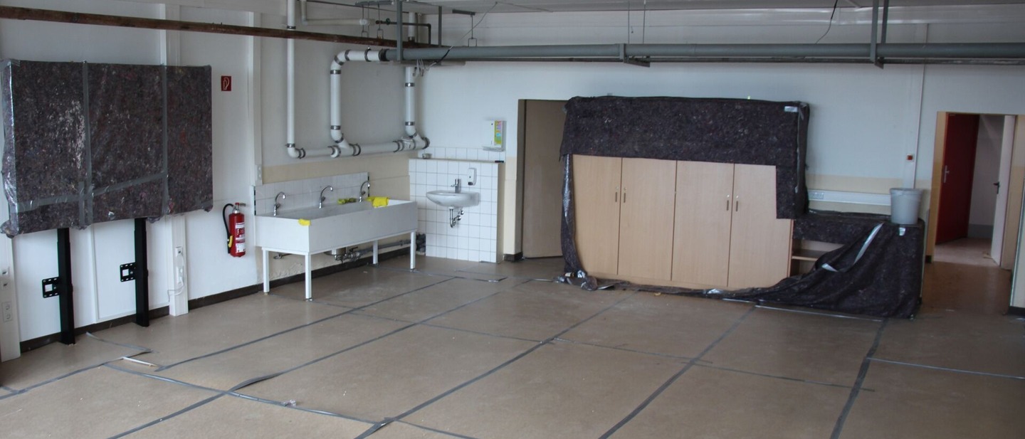 Gewöhnlich zieht in den Sommerferien in die Schulen eine gewisse Ruhe ein: nicht so in die Georg-Rollenhagen-Grundschule. Dort wird ab dem ersten Ferientag fleißig gewerkelt, damit zum neuen Schuljahr der neue Speiseraum im Erdgeschoss fertig wird.