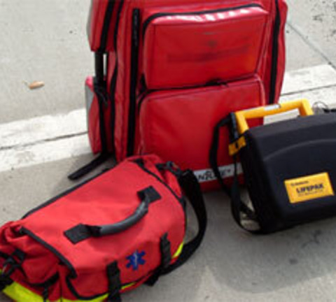 Bei der Alarmierung der Feuerwehr kann es vorkommen, dass die Einsatzkräfte noch vor dem Rettungsdienst eintreffen. Um an Ort und Stelle adäquate Hilfe leisten zu können, ist die Freiwillige Feuerwehr der Stadt Bernau mit einer Erste-Hilfe-Ausrüstung ausgestattet: Rettungsrucksack und Defibrillator.
