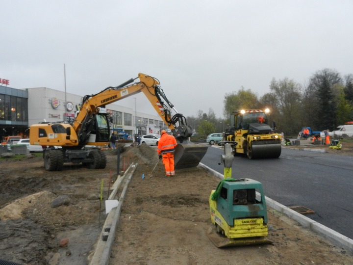 An der Börnicker Chaussee bindet die Ladestraße als vierter Arm des Kreisverkehrs an.