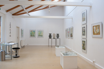 Im „Atelier“ im Hof finden die Besucher eines der bestsortierten Sortimente an Hedwig-Bollhagen-Keramik zu Manufakturpreisen, grafische Angebote und kleinere Ausstellungsprojekte.