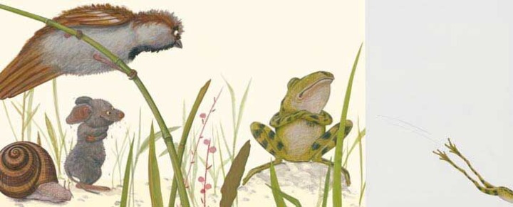 „Mutig, mutig“ von Lorenz Pauli (Text) und Kathrin Schärer (Bilder) von 2006 ist eine lebendige Geschichte, die auf humorvolle Weise eine wichtige Botschaft über Mut vermittelt. Schon die innere Vorder- und Hinterseite des Buches zeigen die realistischen Tiere und stimmen fröhlich auf die Geschichte ein. Die Handlung beginnt wie ein Spiel auf dem Spielplatz: Die Maus, die Schnecke, der Frosch und der Spatz treffen sich am Teich und plötzlich entsteht die Idee, herauszufinden, wer am mutigsten ist. Wer erfindet die beste Mutprobe und wer besteht sie selbst? Was ist mutiger – eine verrückte Mutprobe zu bestehen oder einfach nicht mitzumachen?