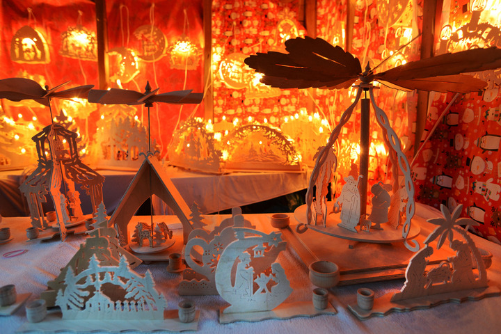 Weihnachtsmarktbesucher, die noch ein individuelles Geschenk suchen, können rund um die St. Marienkirche an den liebevoll gestalteten Ständen fündig werden: zwischen Schwippbögen, Keramik, Kerzen, selbst genähten Sachen, Imkerhonig, Taschen und Schmuck. Der Schmuckherstellerin kann beim Kreieren ihrer Unikate auch über die Schulter geschaut werden.